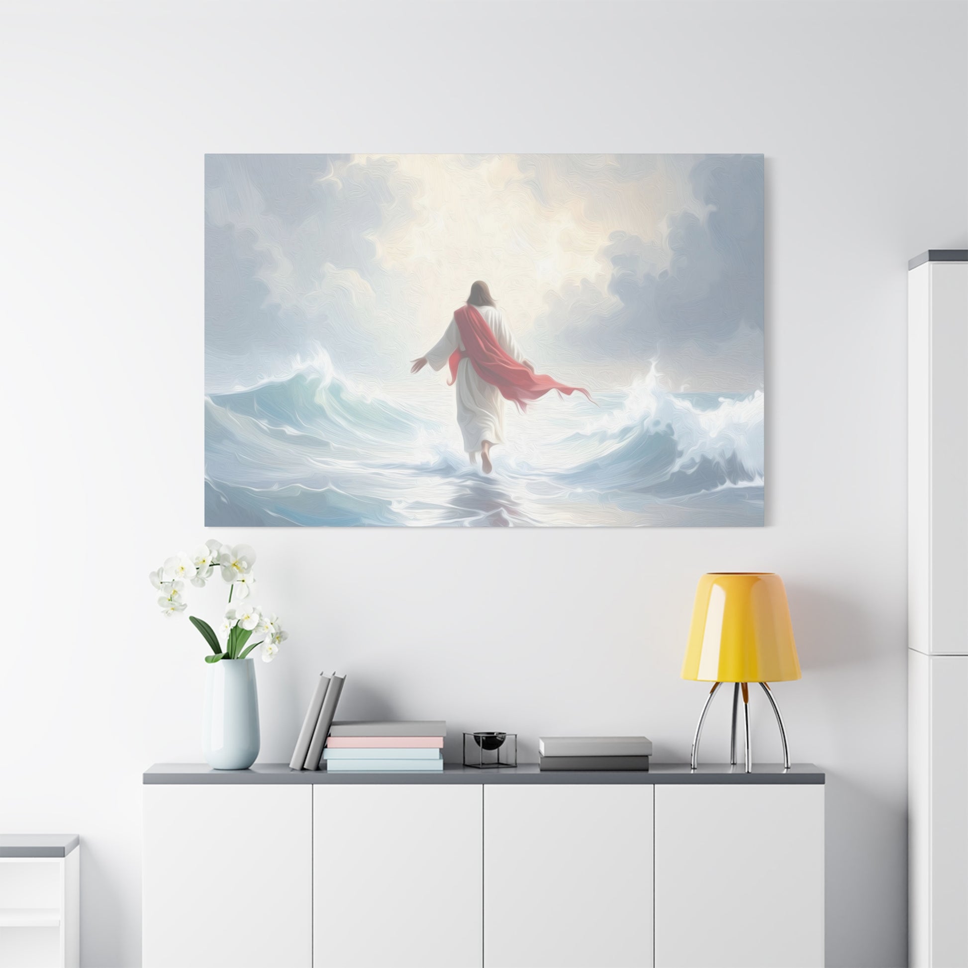Strengthen your spirit with Faith Over Fear, a powerful canvas print featuring Jesus walking on water. This inspiring artwork captures the miracle of faith overcoming life’s storms, reminding us to trust and believe even in the face of fear. Printed on premium canvas with rich detail and lasting color, it makes a meaningful statement piece for living rooms, prayer rooms, or any space seeking peace and encouragement.