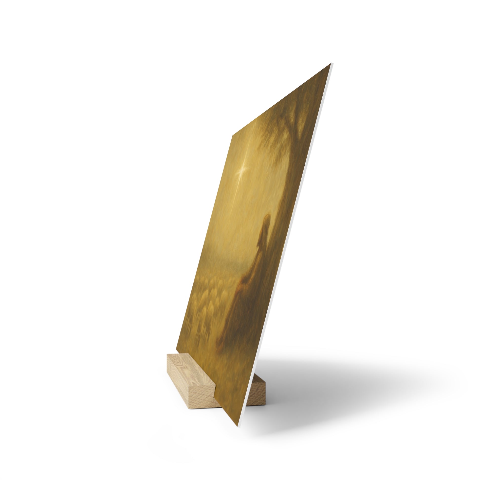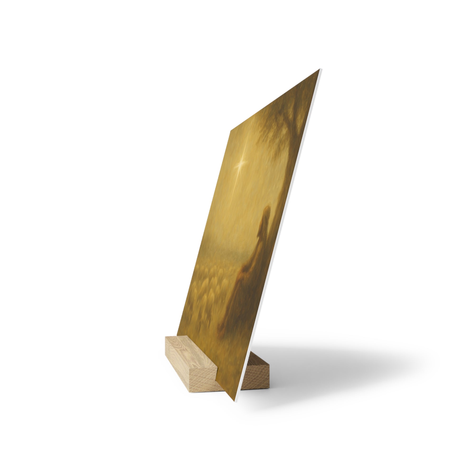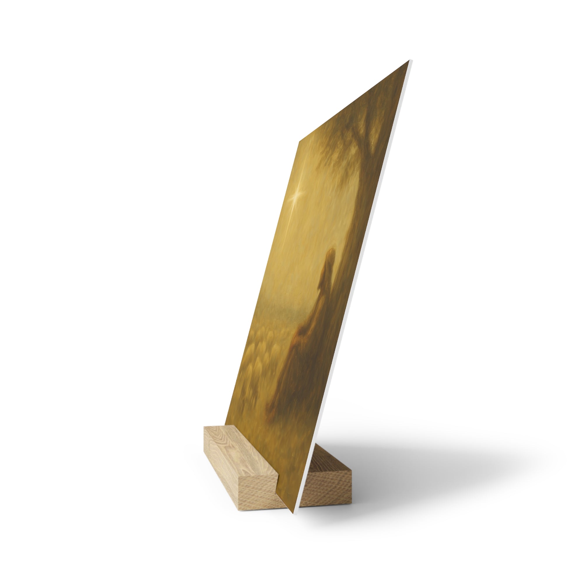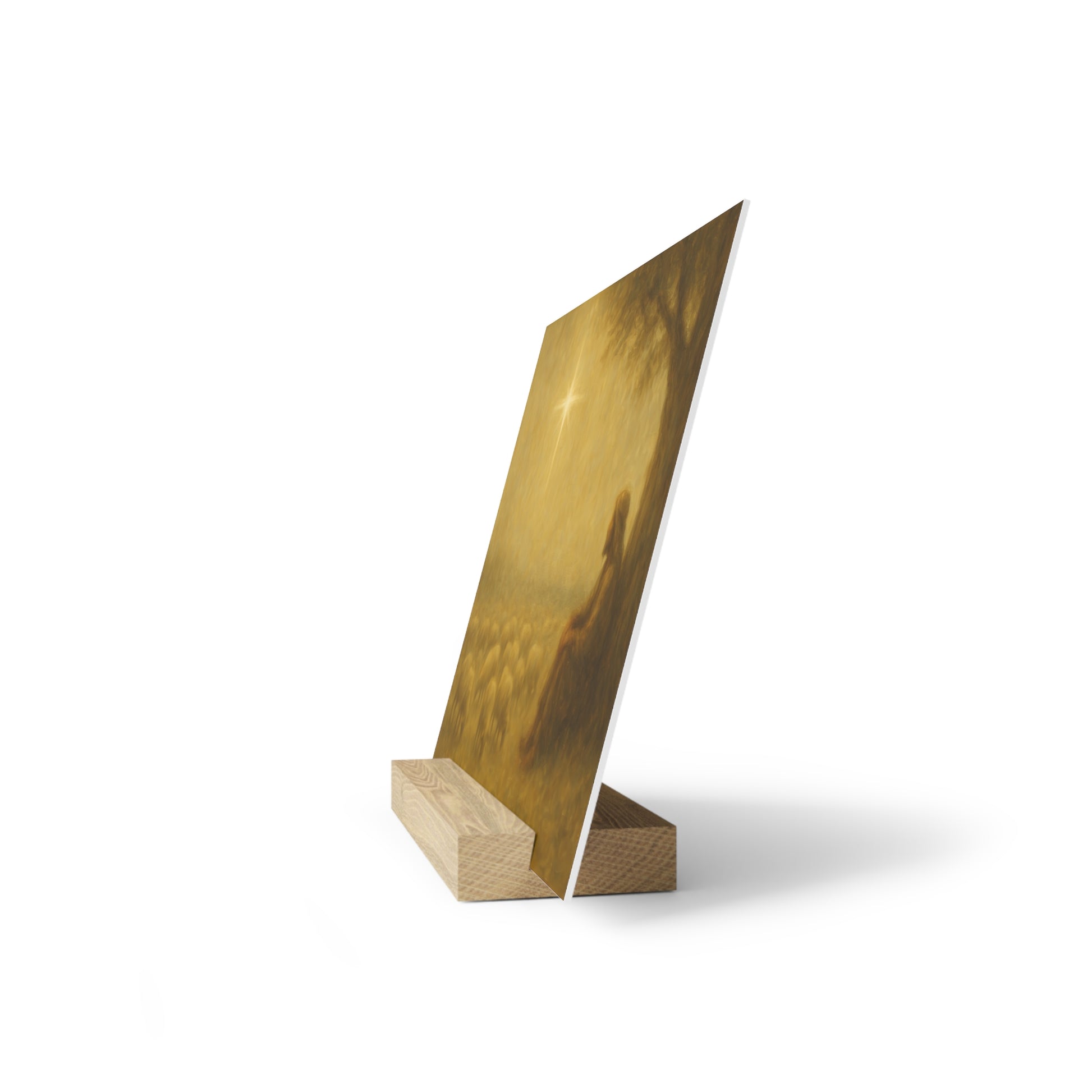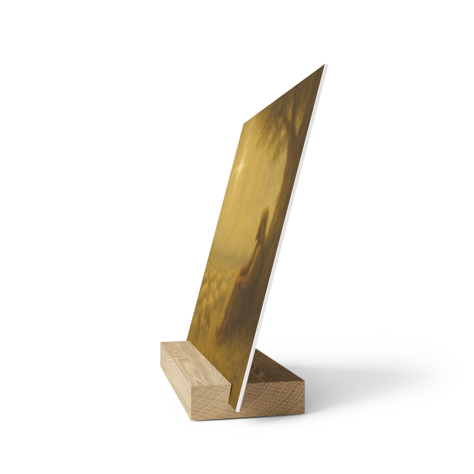 Showcase your favorite artwork in style with our gallery board with stand, a sleek and modern way to display printed art. Each piece is printed on a durable, high-quality gallery board with vibrant color and crisp detail, then paired with a natural wood stand for easy tabletop display. Perfect for desks, shelves, or mantels, this minimalist design adds a touch of elegance and creativity to any space—no wall required.e.
